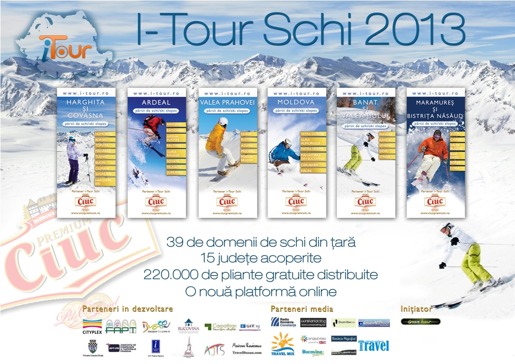 Opt pârtii de schi din judeţul Suceava vor fi promovate online şi prin pliante turistice gratuite, în cadrul Proiectului naţional “i-Tour Schi”. Proiectul, ajuns la ediţia a III a, va fi lansat luni, 21 ianuarie, la Braşov, de Federaţia Asociaţiilor de Promovare Turistică din România şi Asociaţia pentru Promovarea şi Dezvoltarea Turismului din judeţul Braşov. Din judeţul Suceava, vor fi promovate pârtiile de schi din Vatra Dornei, Gura Humorului, Cârlibaba şi Mălini.