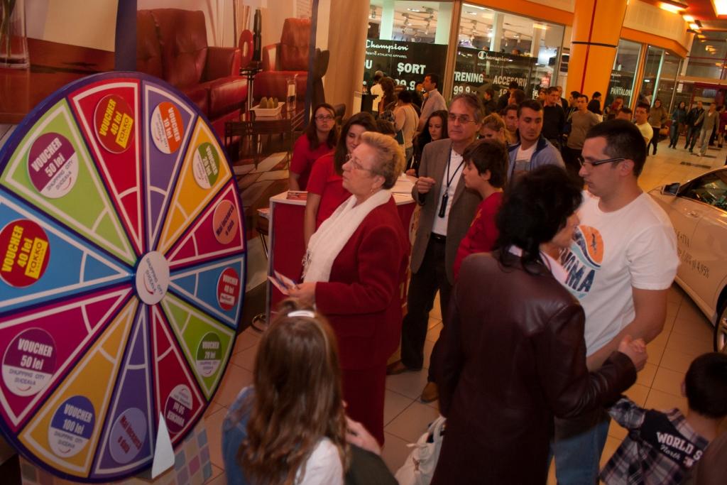 De altfel, evenimentul a fost condimentat cu numeroase concursuri cu premii pentru public, iar cumpărăturile în valoare de minimum 150 lei au asigurat primilor 1.000 de clienţi vouchere în valoare totală de 10.000 euro. Pentru a putea beneficia de premiile puse în joc, clienţii trebuiau să se prezinte cu bonul fiscal la Info Point-ul special amenajat în zona de eveniment şi să învârtă la Roata Norocului.
