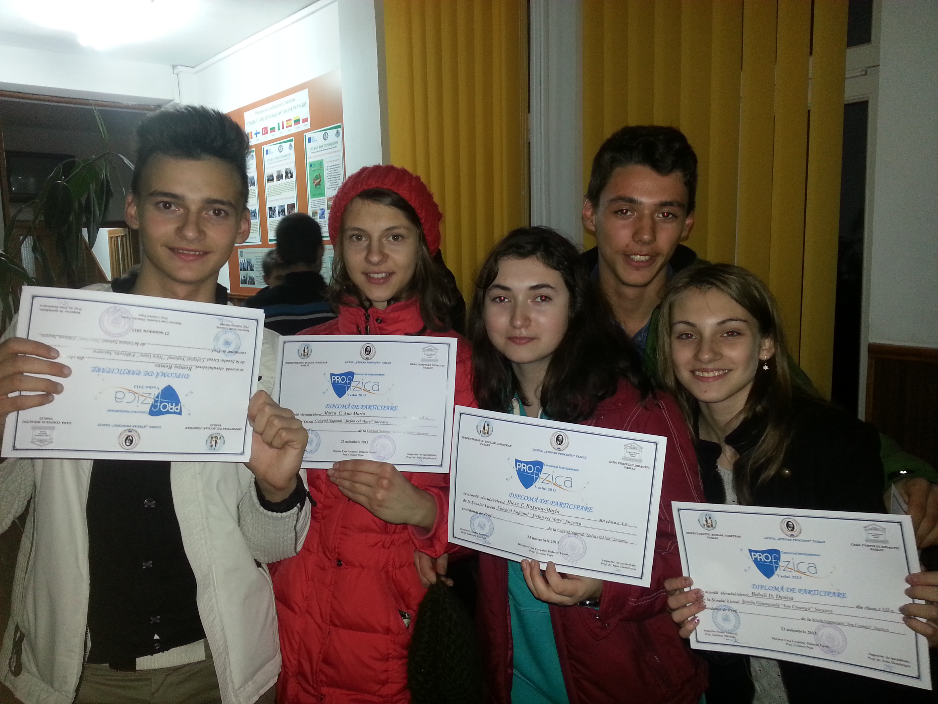 În perioada 22-24 noiembrie, Inspectoratul Şcolar al Judeţului Vaslui a organizat, la Liceul “Ştefan Procopiu” Vaslui, Concursul interjudeţean de fizică “PROFIZICA”, adresat elevilor din clasele VII-XII.