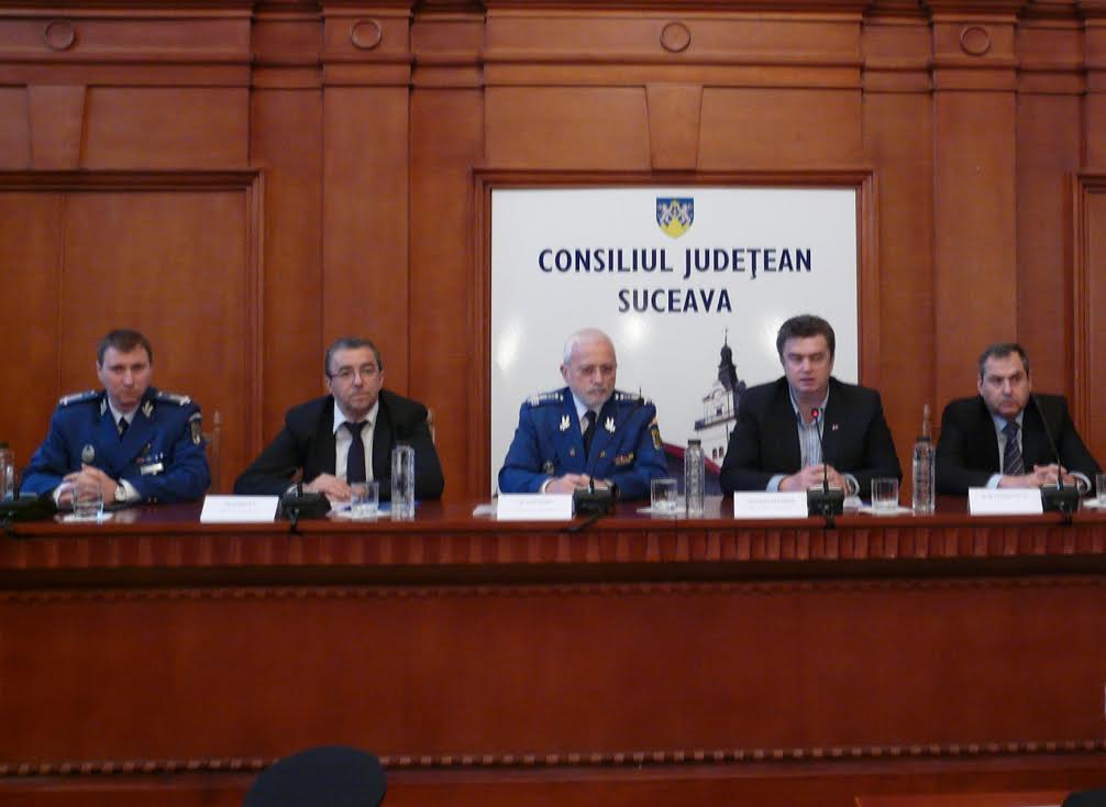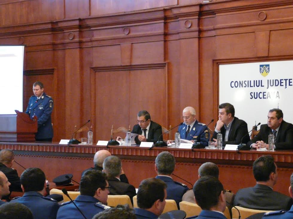 Ieri, 18 decembrie, în Sala “Ştefan cel Mare” din cadrul Palatului Adinistrativ Suceava, s-a desfăşurat Evaluarea activităţii Inspectoratului de Jandarmi Judeţean Suceava în anul 2013, eveniment la care au participat Florin Sinescu – prefect al judeţului Suceava, Ioan Cătălin Nechifor – preşedinte al Consiliului Judeţean Suceava, reprezentanţi ai instituţiilor din judeţ cu care inspectoratul colaborează şi cadre ale unităţii.