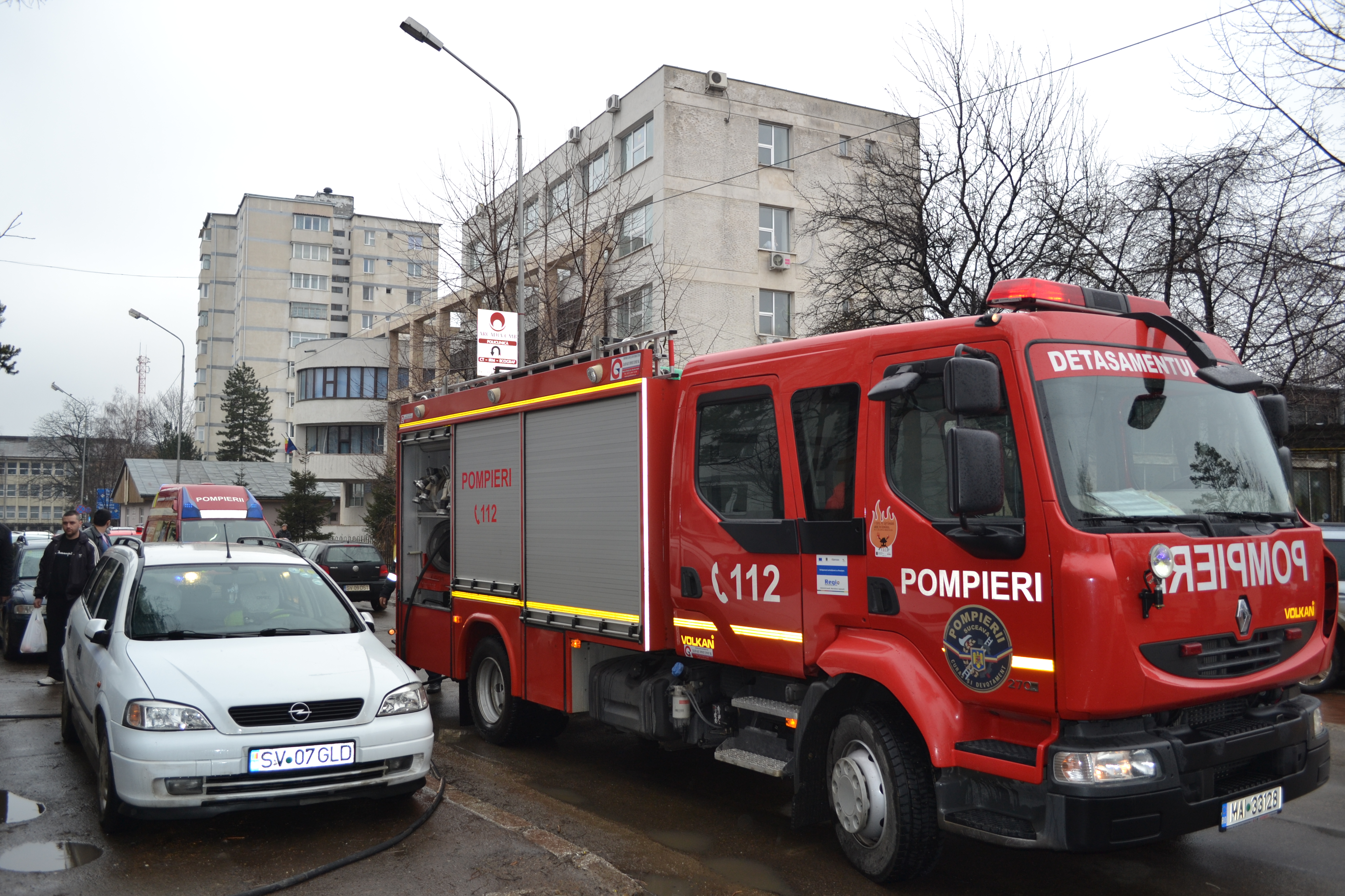 Militarii Detaşamentului de pompieri Suceava au intervenit cu o autospecială de stingere, una pentru descarcerare şi o autosanitară SMURD, pentru localizarea şi lichidarea unui incendiu izbucnit la un apartament dintr-un bloc de locuinţe situat pe strada Scurtă, din municipiul Suceava.