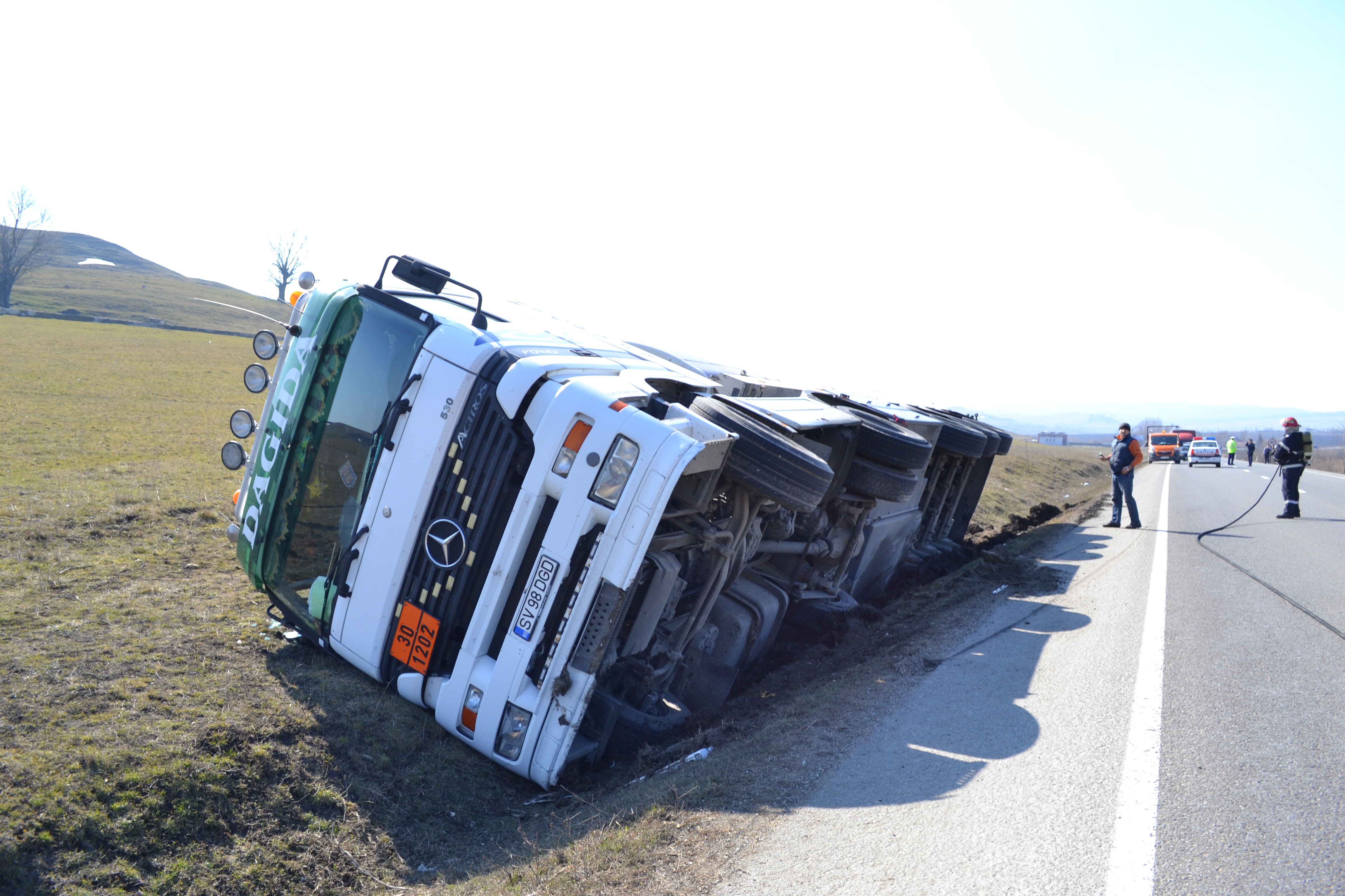 Purtătorul de cuvânt al ISU Suceava, Alin Găleată, a declarat că respectiva cisternă, încărcată cu 20 de tone de motorină, s-a răsturnat pe o parte, în afara şoselei, între localităţile Ilişeşti şi Stroieşti, fără a se înregistra victime.