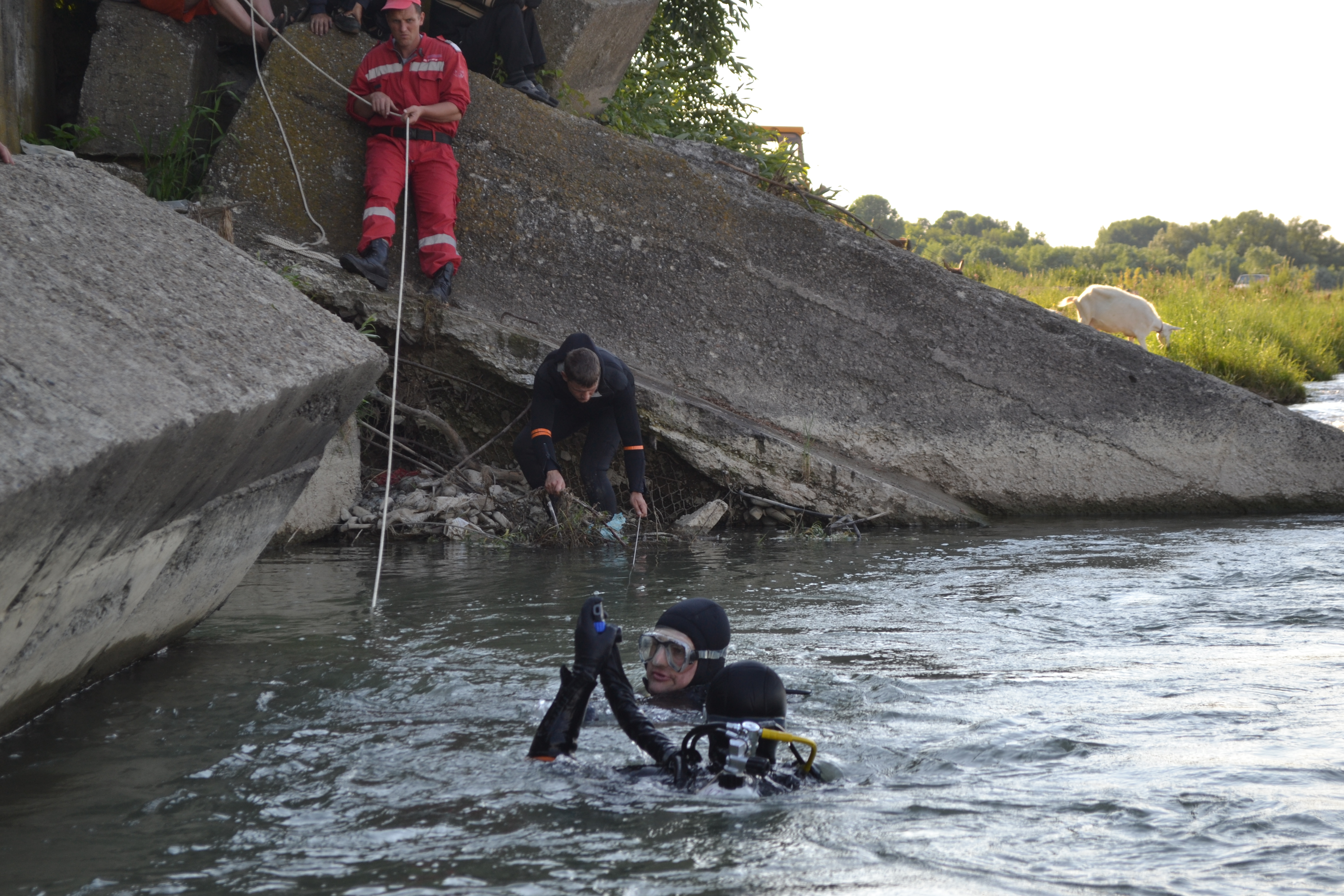 Din cauza apei foarte adânci şi a curenţilor puternici, a fost necesară intervenţia echipei de scafandri de la Detaşamentul de pompieri Suceava.
