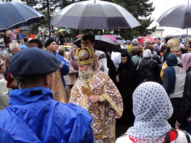 Dimineaţă credincioşii s-au rugat la foişorul din incinta mănăstirii, participând la mai multe slujbe oficiate de soboare de preoţi.