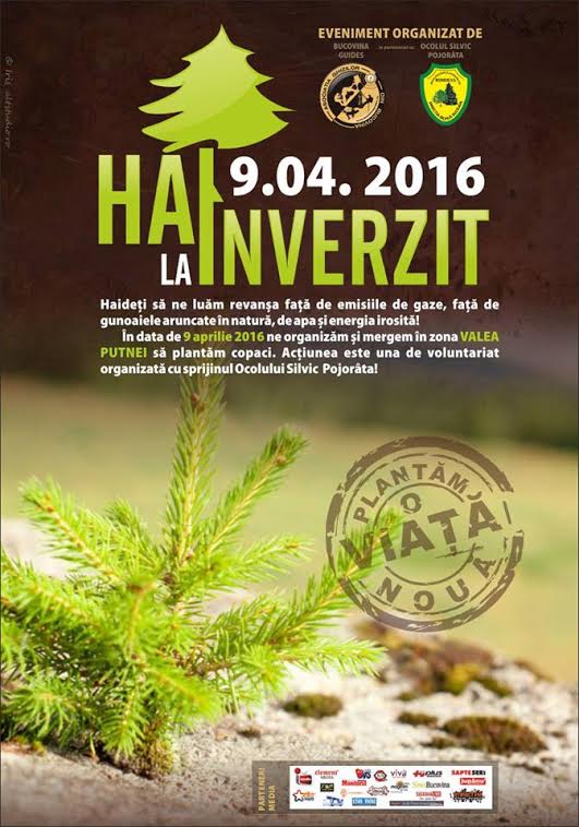 Asociația Ghizilor din Bucovina, împreună cu Ocolul Silvic Suceava, organizează sâmbătă, 9 aprilie, campania “Hai la înverzit”, la care participă voluntari din tot județul.