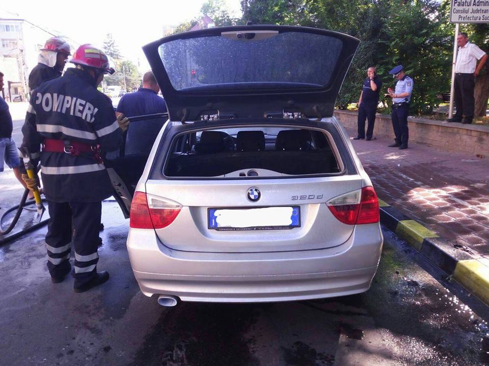 Militarii Detaşamentului de Pompieri Suceava au intervenit, joi după-amiază, cu o autospecială pentru localizarea şi lichidarea unui incendiu izbucnit la un autoturism, în centrul municipiului Suceava.
