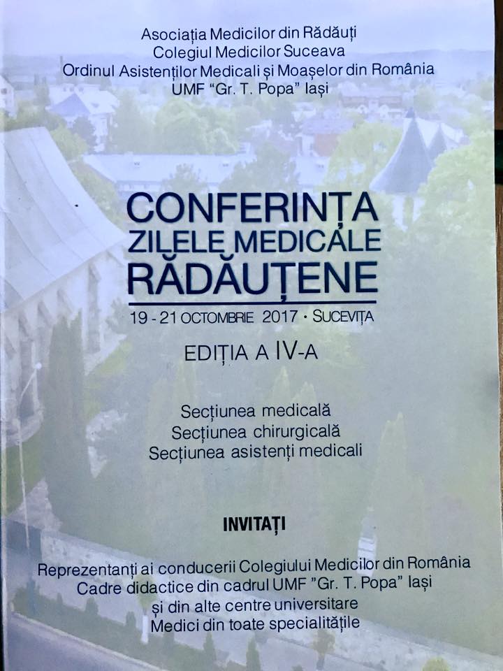 Asociația medicilor din Rădăuți, Colegiul Medicilor Suceava, Ordinul Asistenților Medicali Suceava, Ordinul Asistenților Medicali și Moașelor din România, Universitatea de Medicină și Farmacie ”Gr. T. Popa” Iași, organizează cea de a IV-a ediție a „Zilelor Medicale Rădăuțene”, conferință ce se va desfășura pe trei secțiuni: medicală, chirurgicală, asistenți medicali.