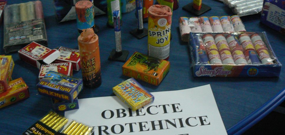 Poliţiştii reamintesc faptul că este interzisă deţinerea, utilizarea şi vânzarea către publicul larg a articolelor pirotehnice de divertisment din categoriile 2, 3 şi 4, a articolelor pirotehnice de scenă (T1 şi T2) şi a altor articole pirotehnice din categoria P2, din motive de ordine și siguranţă publică, securitate şi pentru protecţia mediului.