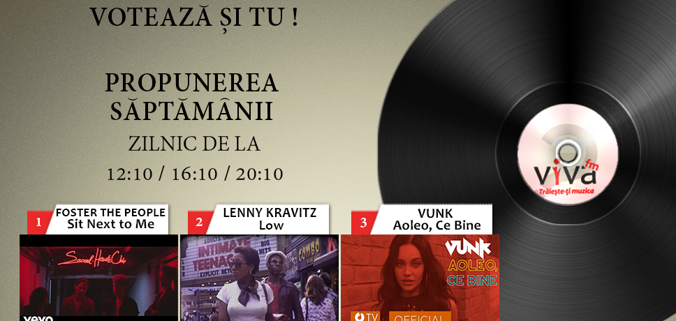 Trei piese care alcătuiesc Propunerea Săptămânii aşteaptă să devină preferatele tale! Piesa care va aduna cele mai multe voturi va intra în playlistul Viva FM!