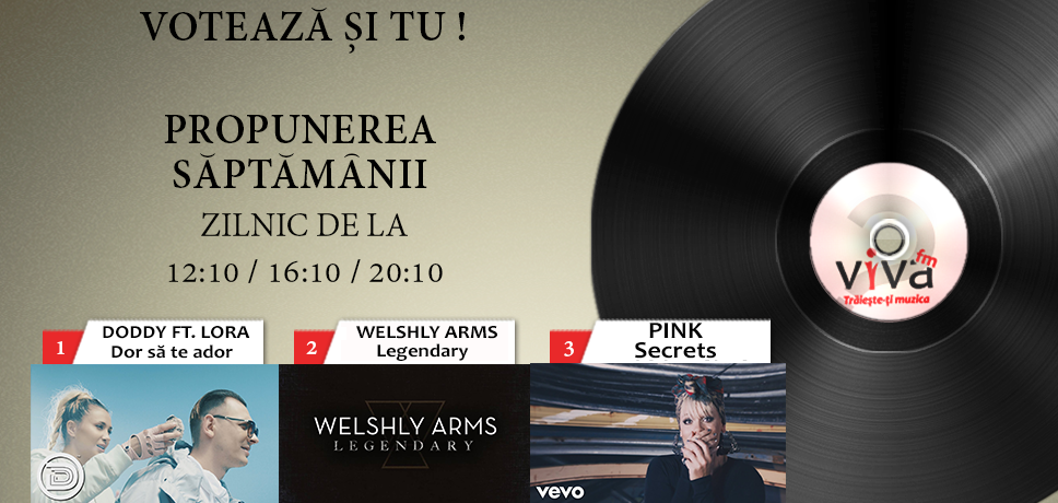Trei piese care alcătuiesc Propunerea Săptămânii aşteaptă să devină preferatele tale! Piesa care va aduna cele mai multe voturi va intra în playlistul Viva FM!