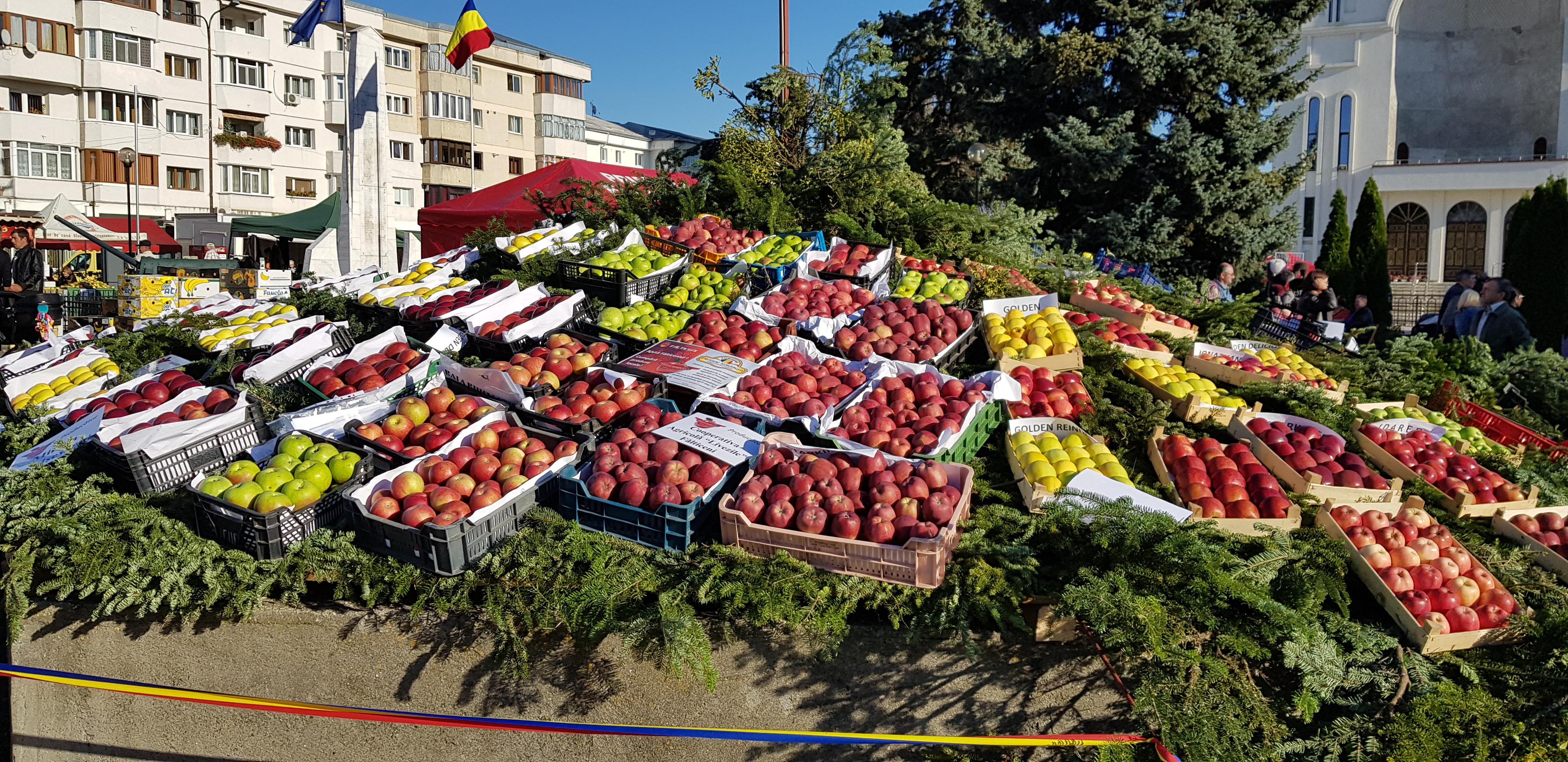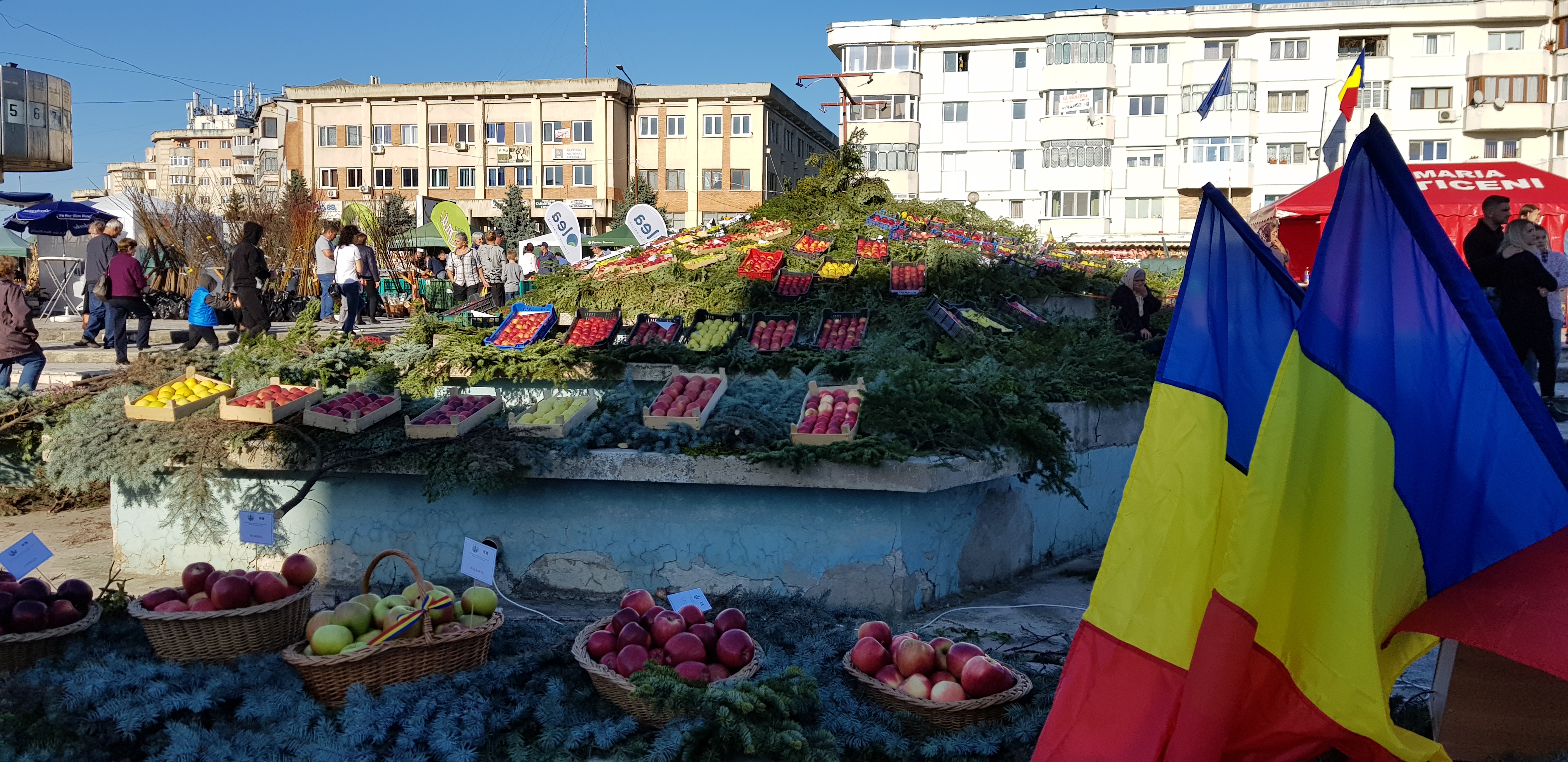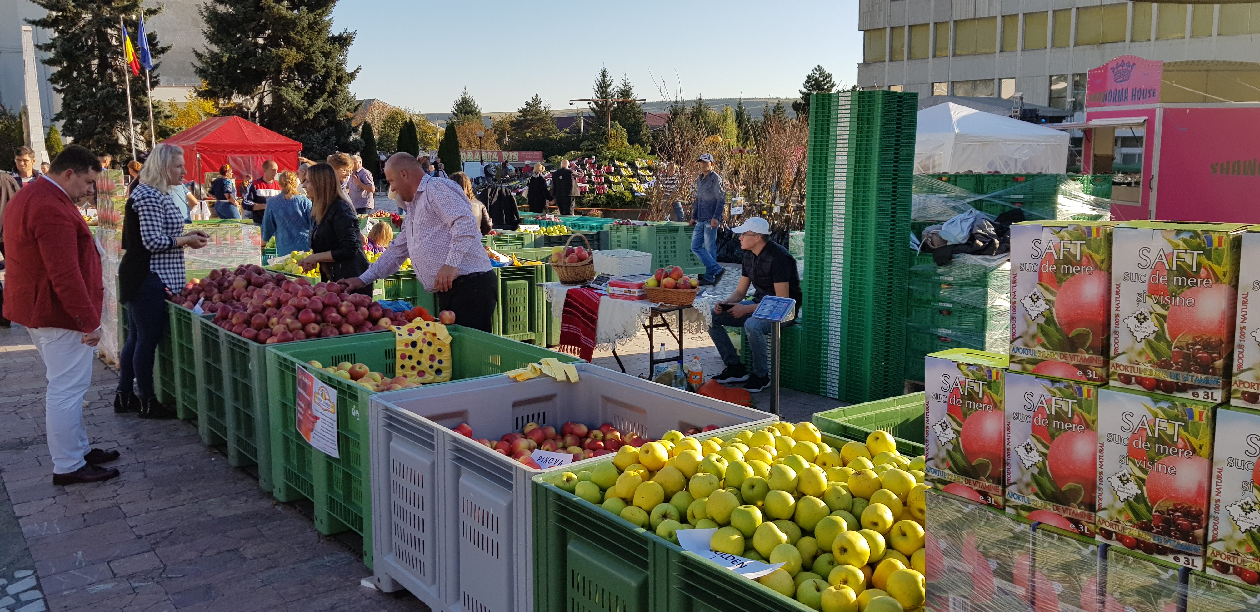 Pomicultorii din zonă şi-au scos la vânzare produsele, alături de furnizori de materiale şi produse specifice pentru agricultură, producători şi procesatori de lapte şi carne, apicultori, legumicultori și meşteri populari.