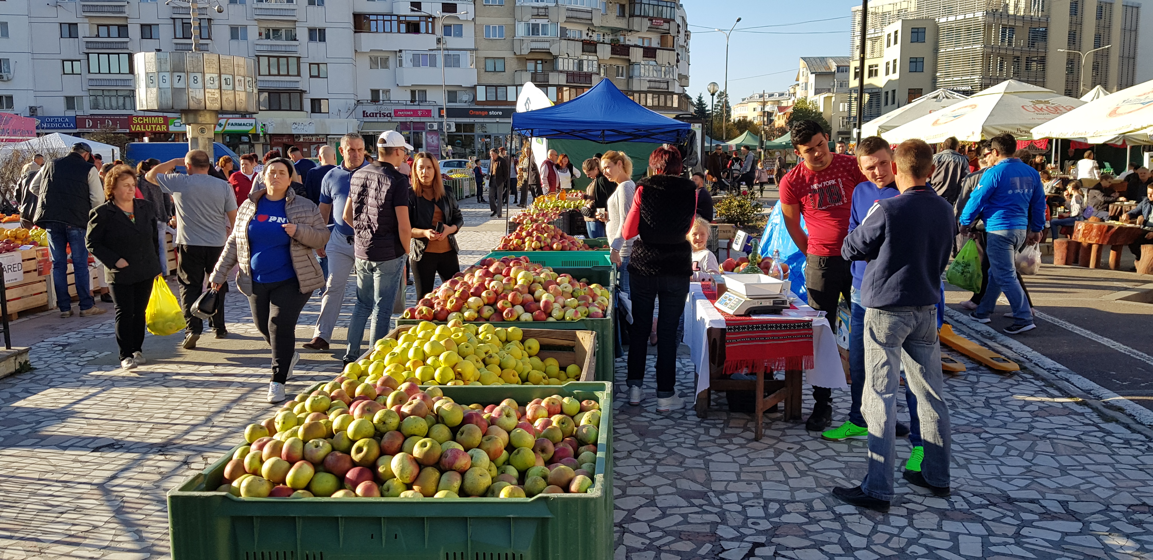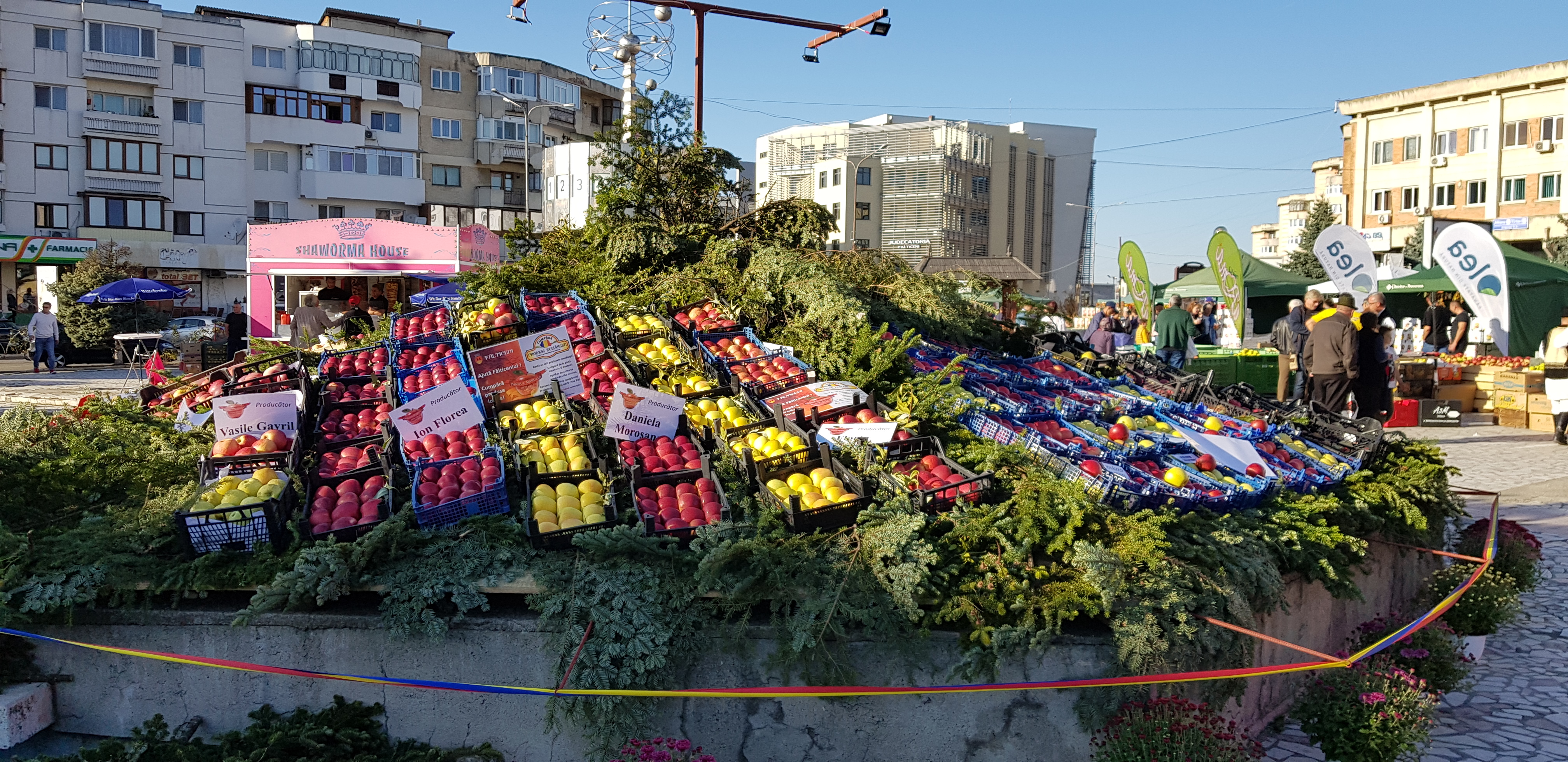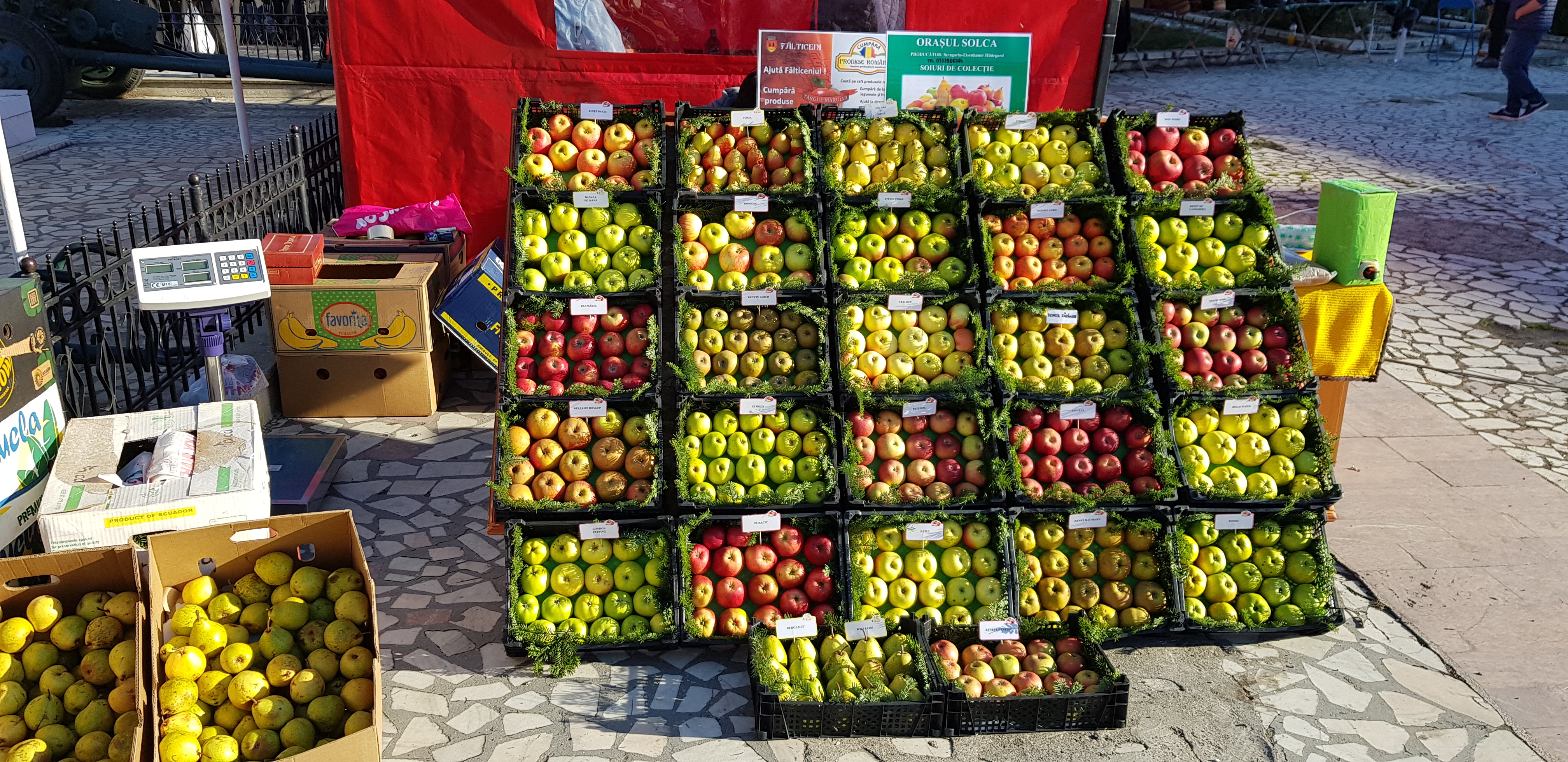 Pomicultorii din zonă şi-au scos la vânzare produsele, alături de furnizori de materiale şi produse specifice pentru agricultură, producători şi procesatori de lapte şi carne, apicultori, legumicultori și meşteri populari.