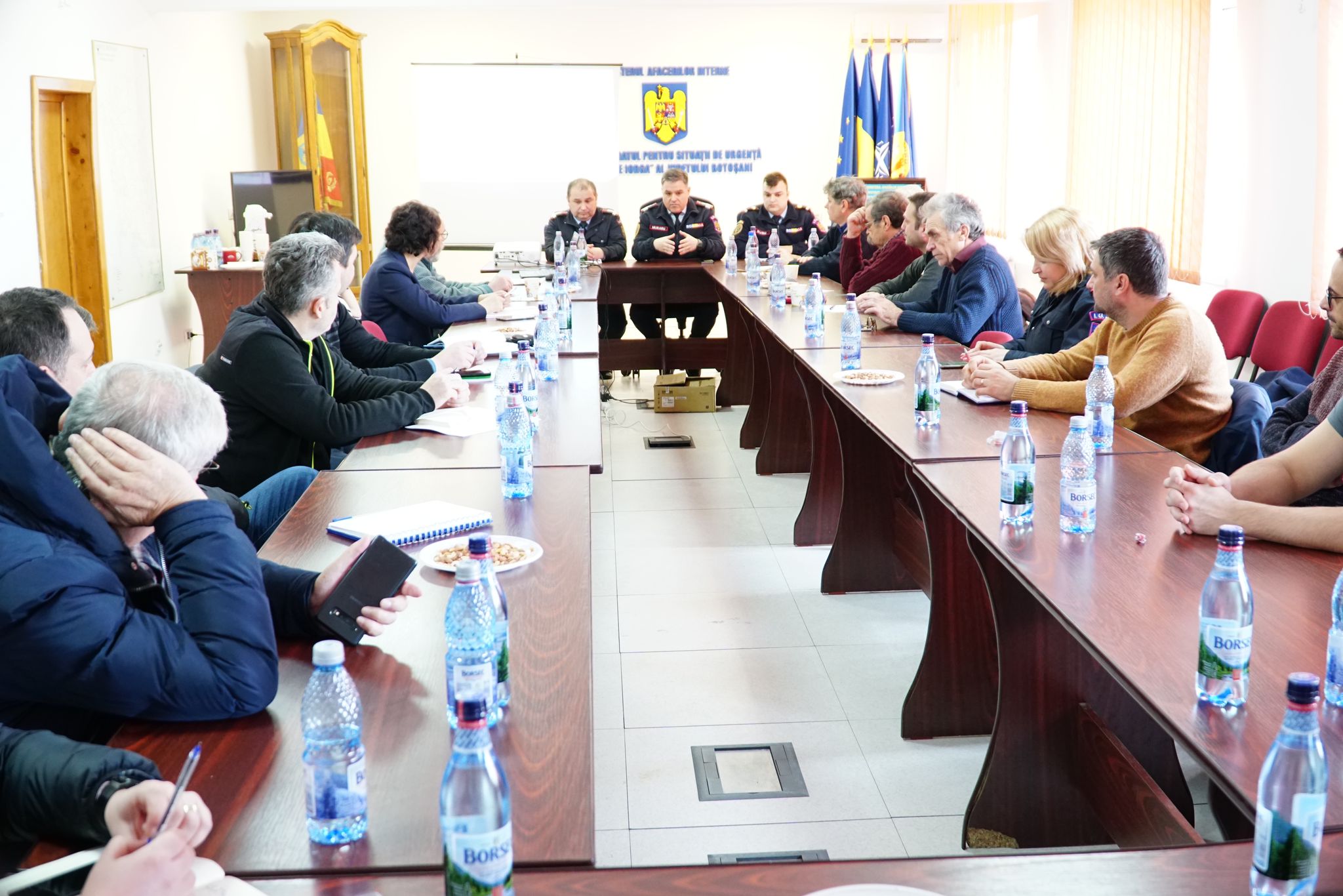 Specialiștii Compartimentului Avizare – Autorizare din cadrul Inspectoratului pentru Situații de Urgență „Nicolae Iorga” al Județului Botoșani s-au întâlnit, astăzi, cu factorii implicați în proiectarea și execuția construcțiilor pentru a discuta despre îndeplinirea cerinței fundamentale – „securitate la incendiu”.