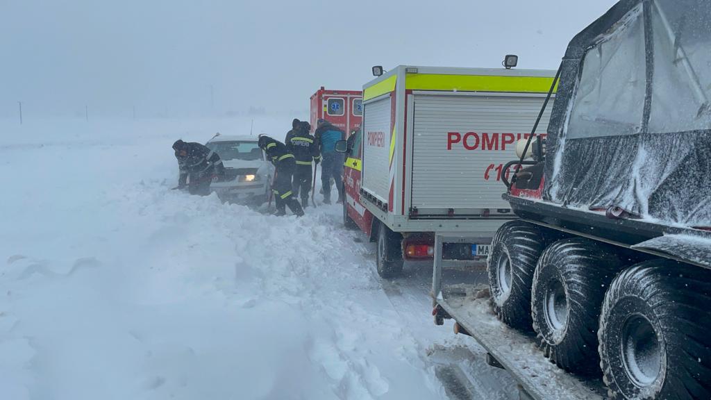 Echipajul ISU Botoșani, prezent în teren pentru a monitoriza situația pe DN 29 Botoșani – Săveni, a intervenit pentru a scoate din zăpadă o autoutilitară și un autoturism, rămase înzăpezite la ieșirea din localitatea Unțeni.