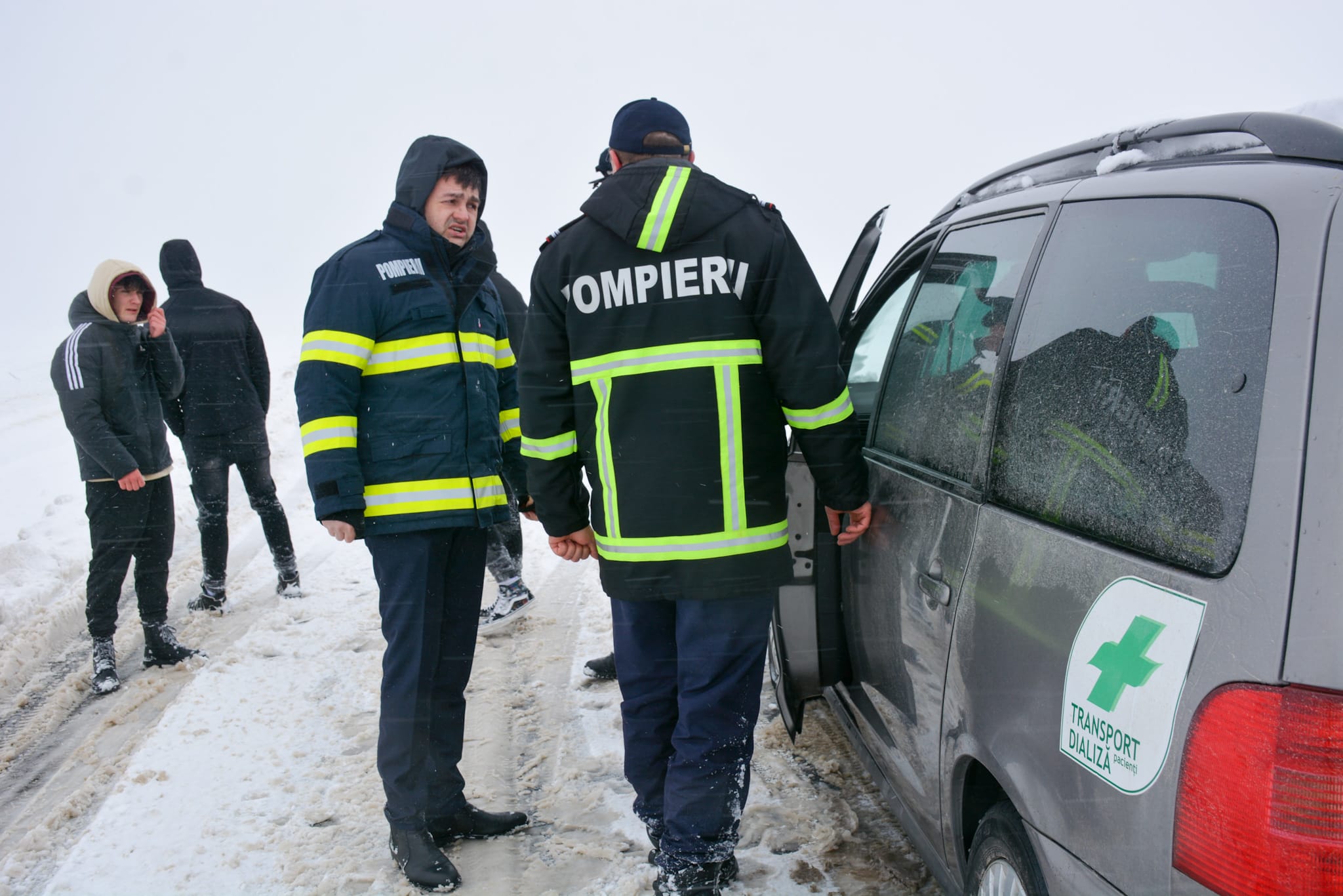 La ieșirea din orașul Ștefănești, un autoturism în care se afla o persoană a fost scos din nămeți de un echipaj de pompieri.