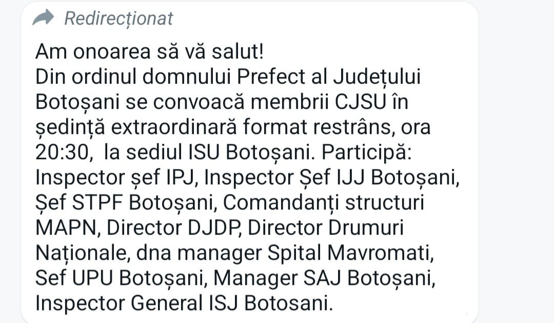 Conducerea Consiliului Județean Botoșani a aflat de la directorul INM despre Codul Roșu și aduce o serie de acuzații prefectului Sorin Cornilă.
