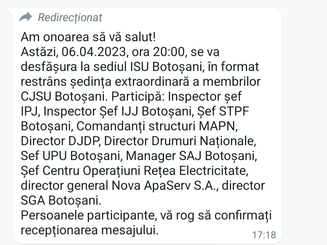 Este regretabil că a trebuit să aflăm de la directorul INM București despre codul roșu din județ, că domnul prefect Sorin Cornilă „a ordonat” doar prezența anumitor persoane la ședințele CJSU, fără a convoca și reprezentanții Consiliului Județean, care au mai gestionat astfel de situații de criză și au experiența necesară de a lua cele mai bune soluții.