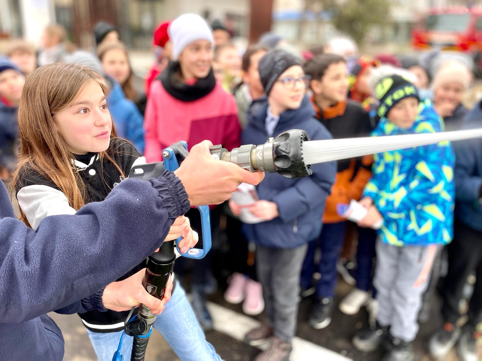 Copiii au aflat și în ce situații pompierii intervin cu autospecialele de stingere cu apă și spumă și descarcerare. Cei mai curajoși au probat echipamentele de protecție folosite în misiuni.