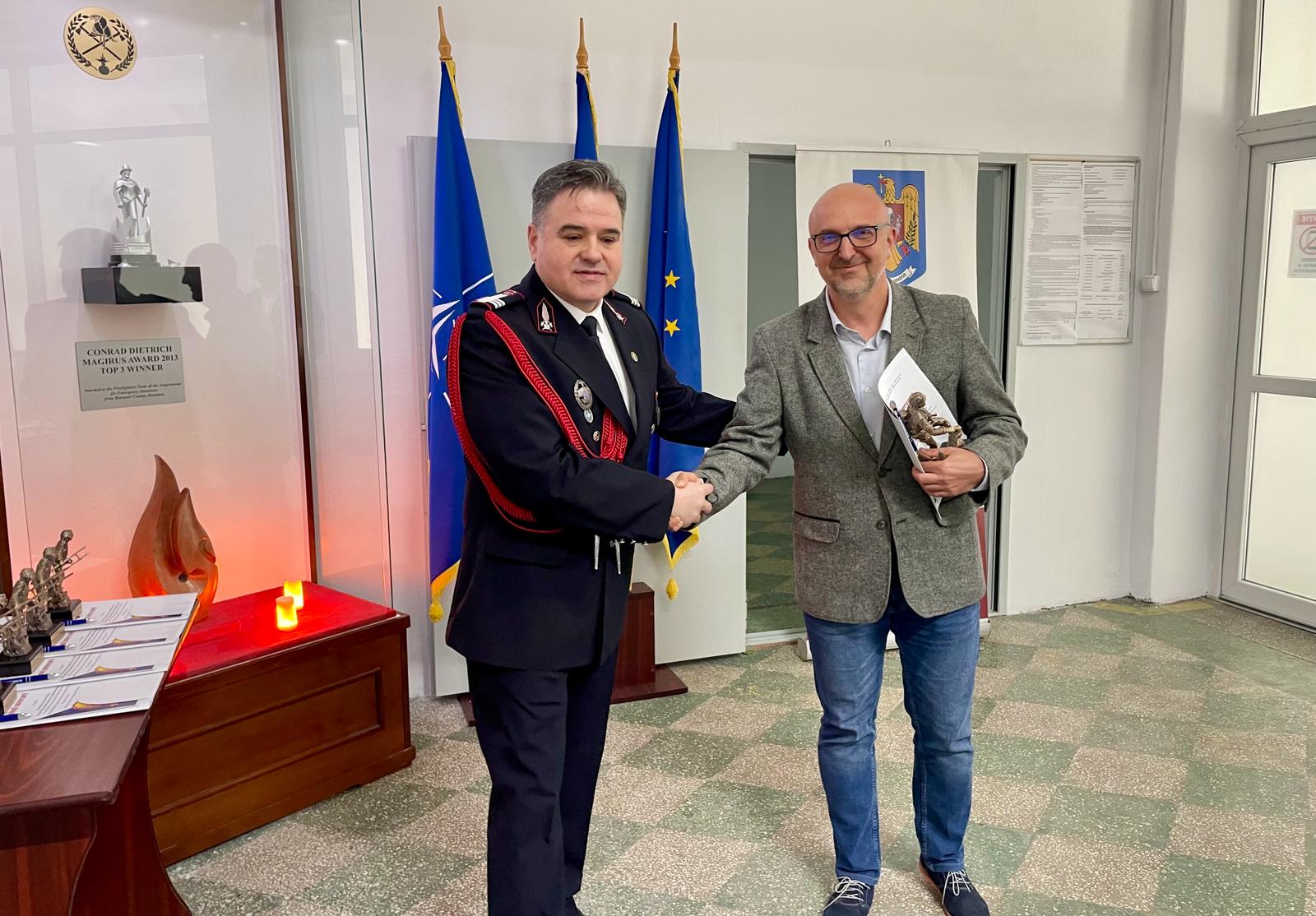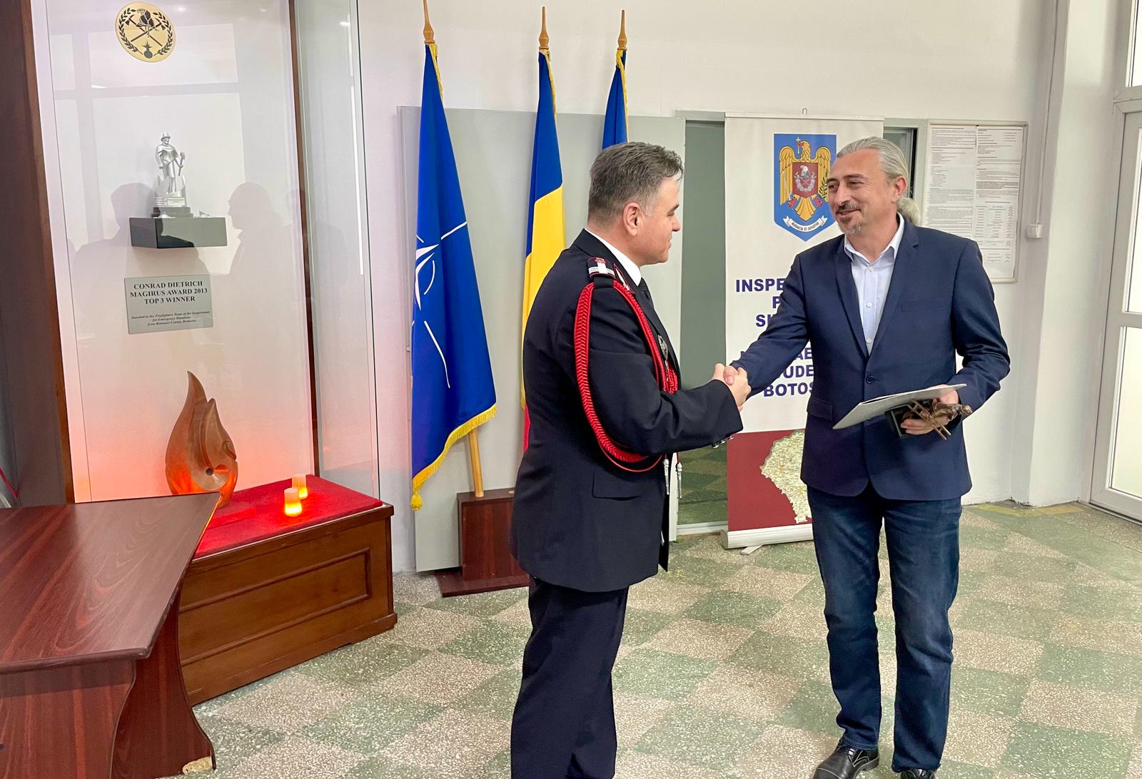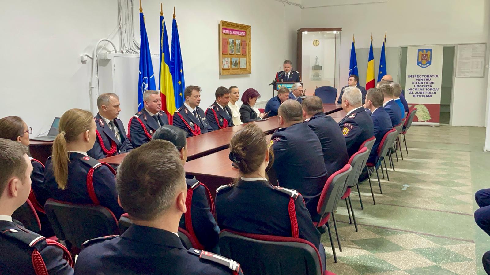 Alături de pompieri, la acest moment festiv, au fost prefectul județului, Sorin Cornilă, administratorul public al județului, Cristian Nistor, șefii structurilor județene ale Ministerului Afacerilor Interne, coordonatorul UPU-SMURD, dr. Ramona Guraliuc, managerul Spitalului Județean Mavromativ Botoșani, dr. Monica Delia Adăscăliței, precum și managerul Serviciului Județean de Ambulanță Botoșani, dr. Eduard Gurău.