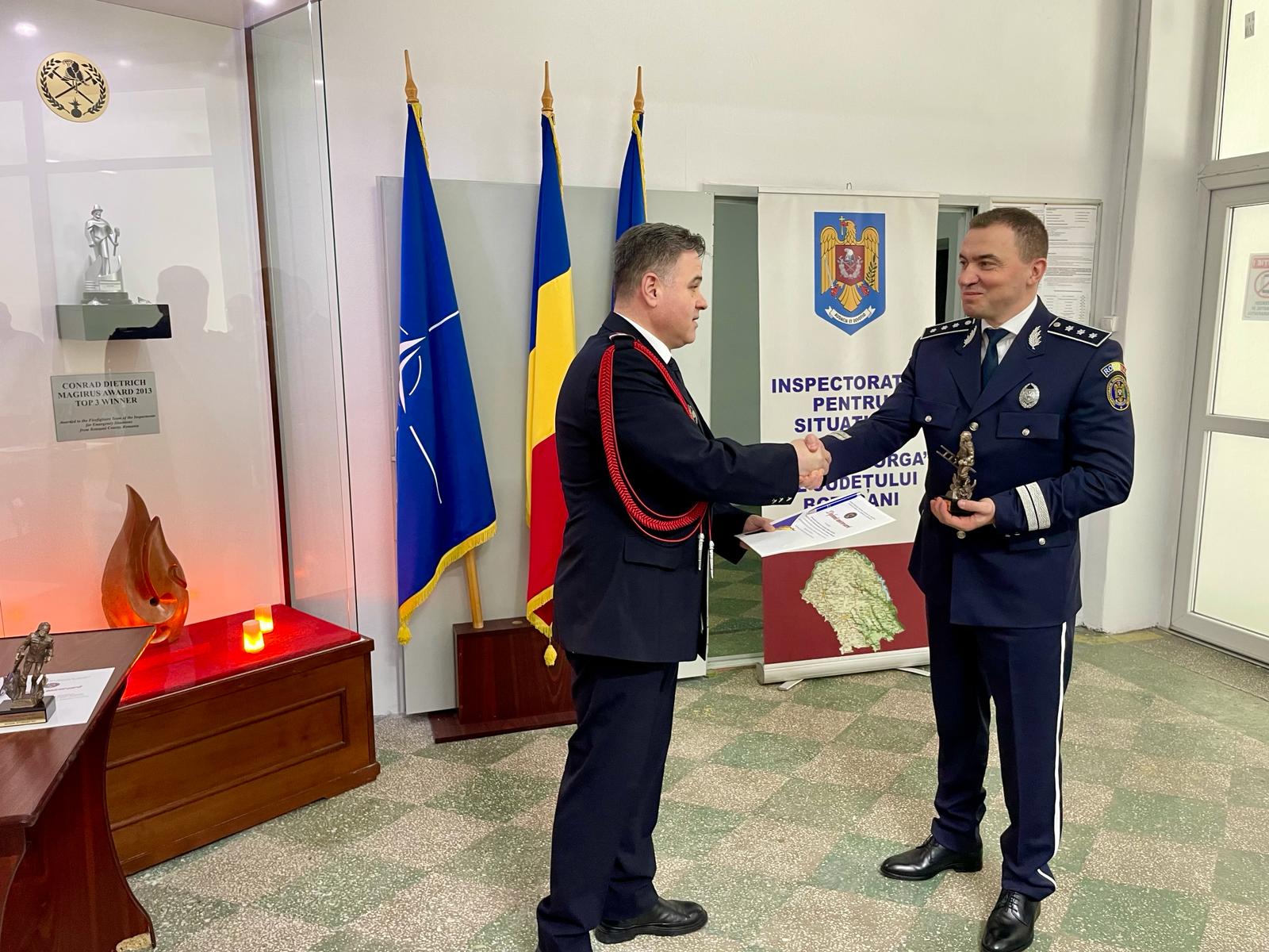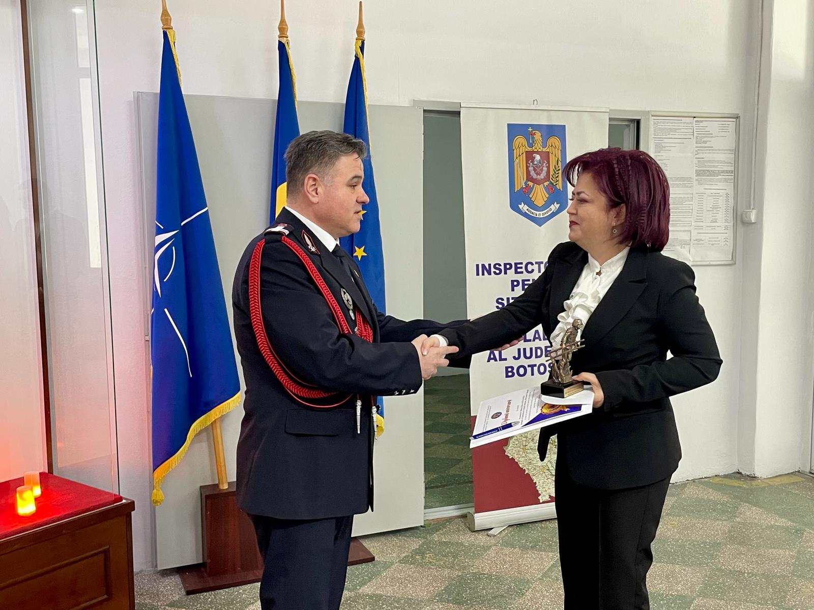 Cu prilejul Zilei Protecției Civile din România, patru pompieri botoşăneni, care au obţinut rezultate foarte bune în îndeplinirea atribuţiilor de serviciu, au fost înaintaţi în gradul următor, înaintea expirării stagiului minim.