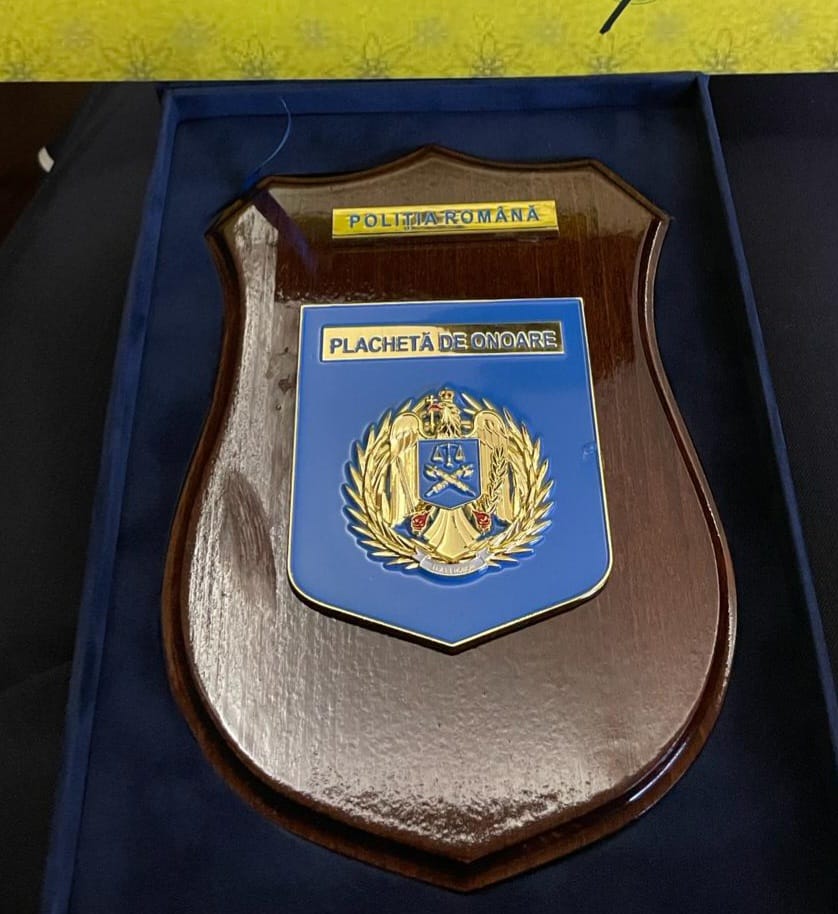 Aceștia au primit Placheta de onoare a Poliției Române pentru merite deosebite în activitatea desfășurată.