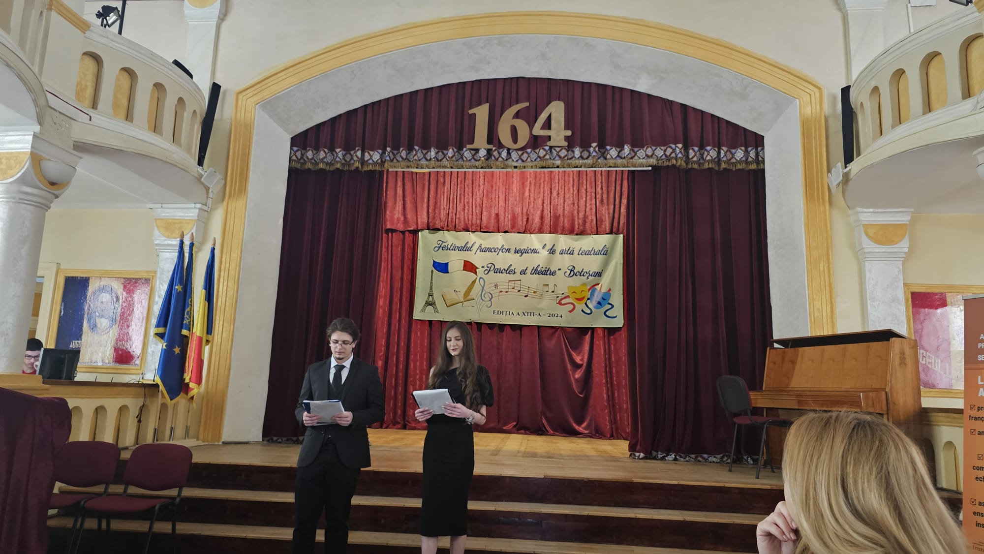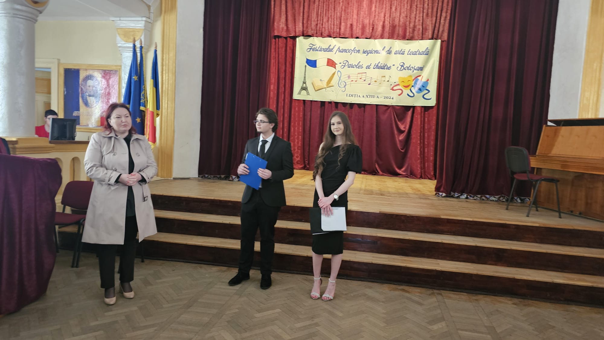 Sâmbătă, 30 martie 2024, Aula Magna a Colegiului Naţional “A. T. Laurian” a găzduit ce-a de-a XIII-a ediţie a Festivalului francofon regional de artă teatrală „Parole et théâtre”. La deschiderea oficială au participat inspectorul școlar general, prof. Bogdan-Gheorghe Suruciuc, inspectorul de limbi moderne, prof. Irina Telişcă, reprezentanţii conducerii celor trei licee organizatoare, prof. Ioan Onofrei, prof. Beatrice-Cătălina Păpădie, prof. Ştefan Oltean, membrii juriului, profesori invitaţi, elevi concurenţi şi voluntari, părinţi, susţinători, profesori organizatori.