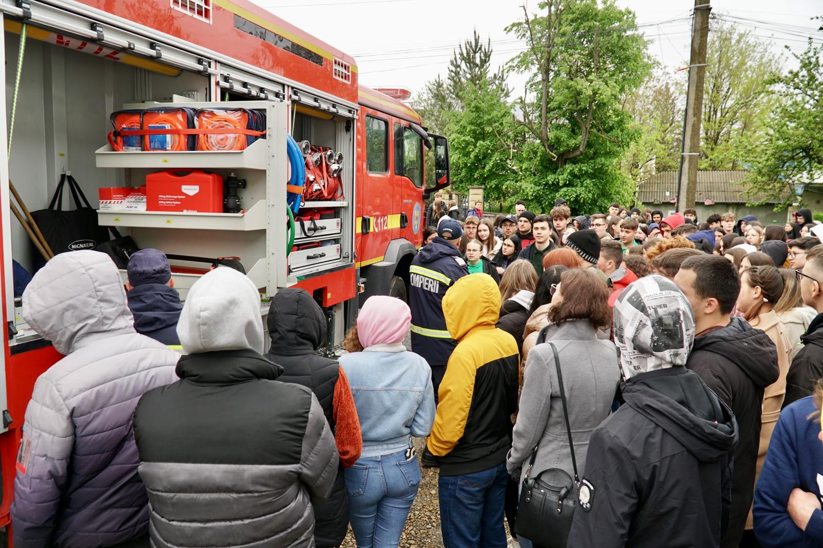 Cu acest prilej, elevii au avut ocazia să vadă mijloacele tehnice și echipamentele folosite de pompieri în misiuni, la fața locului fiind prezent și un echipaj din cadrul Punctului de Lucru Darabani, cu o autospecială de stingere cu apă și spumă.