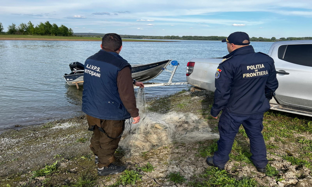 În ultima săptămână, poliţiştii de frontieră botoșăneni, care executau misiuni de patrulare pe râul Prut sau în cooperare cu reprezentanți ai Asociației Generale a Vânătorilor și Pescarilor Sportivi Botoșani, cu ambarcaţiile din dotare, au descoperit plase de pescuit, în lungime totală de aproximativ 200 metri, de tip monofilament, ce aveau ochiul de plasă sub dimensiunile admise de lege.