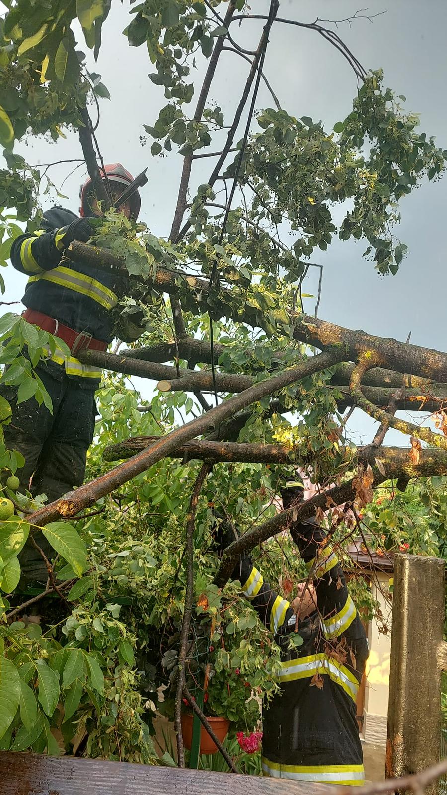 În urma fenomenelor meteo periculoase care s-au înregistrat în această după-amiază în mai multe comune ale județului, pompierii militari și voluntari, drumarii și echipele de intervenție a furnizorului de energie electrică, au fost solicitați să intervină pentru înlăturarea efectelor, astfel: