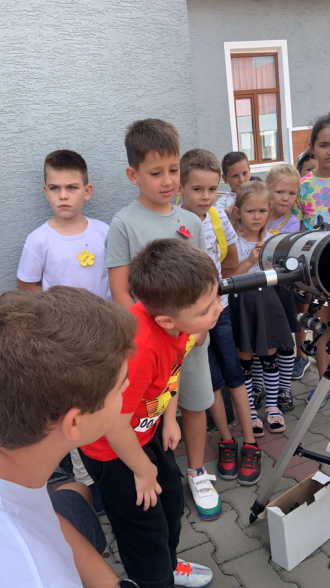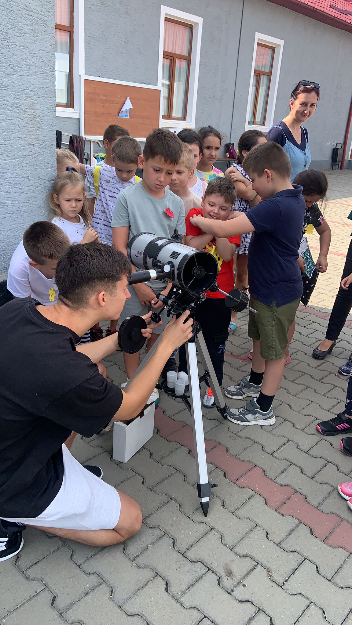 Copiii au adresat întrebări celor doi olimpici, iar la final au putut vedea și modul în care un telescop surprinde imagini ale cerului.