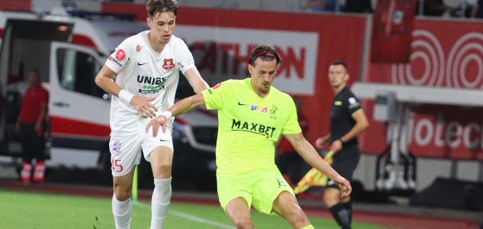 - Sergiu Florin Buș și Robert Miskovic în meciul de fotbal dintre AFC Hermannstadt Sibiu si Poli Iași, peru Superliga Superbet, desfășurat pe Stadionul Municipal din Sibiu, sâmbătă 31 august. © FOTO: Valentin MACREA/SPORT PICTURES