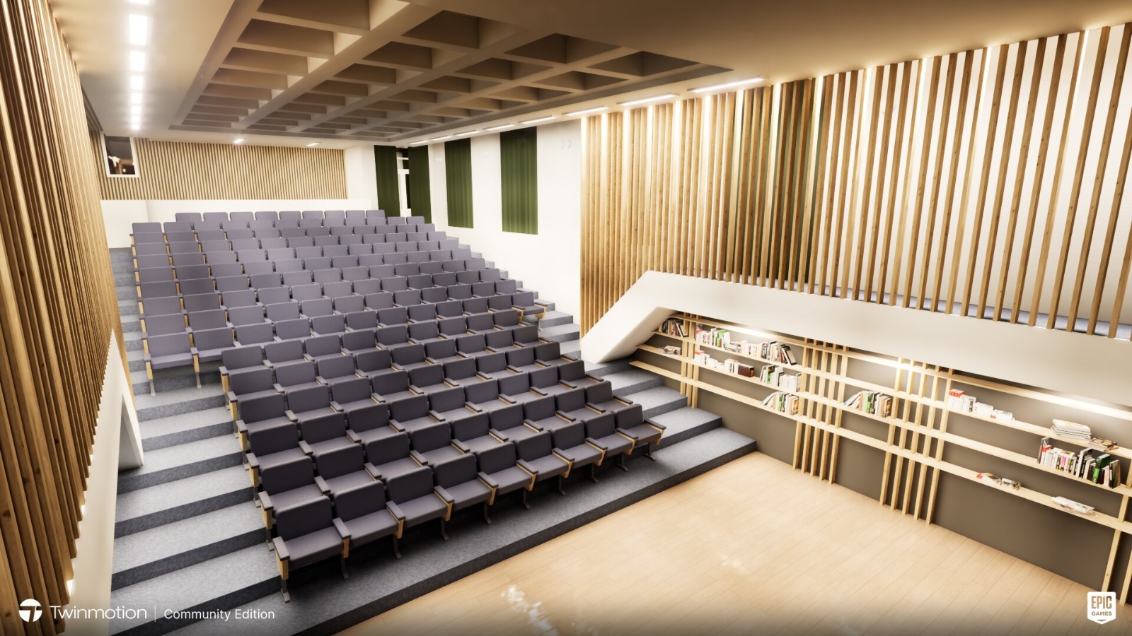 Noile dotări includ: un sistem de iluminare multifuncțional, adaptat pentru diversele activități desfășurate în amfiteatru, un sistem audio-video de ultimă generație și mobilierul necesar — scaune, birouri și rafturi pentru cărți. De asemenea, va fi modernizat sistemul de încălzire, iar ușile de acces și blaturile ferestrelor vor fi înlocuite pentru a reduce pierderile de căldură.
