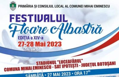 Primăria şi Consiliul Local al comunei Mihai Eminescu organizează, în zilele de 27 şi 28 mai 2023, cea de-a XIV- a ediţie a Festivalului “Floare Albastră”....