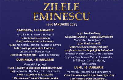 Zilele Eminescu, ediția ianuarie 2023, la Memorialul Ipotești