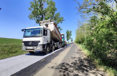 Se toarnă asfalt pe DJ 296 Botoșani-Cișmea-intersecție Costești