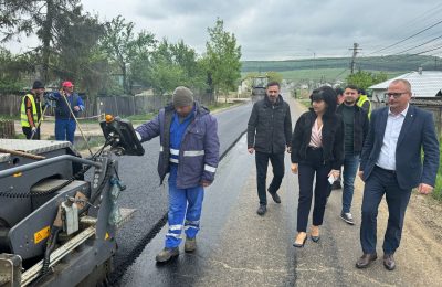 Covor asfaltic nou turnat pe drumul județean din Copălău