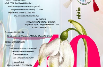 Festivalul Național de Muzică Ușoară Românească „Mărțișor Dorohoian” se bucură anul acesta de cea de a XL-a ediție. Organizatorii: Centrul Județean...