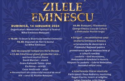 Programul evenimentelor organizate de Teatrul „Mihai Eminescu” Botoșani în parteneriat cu Memorialul „Ipotești” cu prilejul Zilelor Eminescu –...