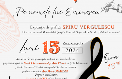 Memorialul Ipotești – Centrul Național de Studii ,, Mihai Eminescu”, instituție aflată în subordinea Consiliului Județean Botoșani, organizează, în...